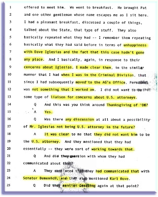 DoJ criminal attorney matthew w. friedrich's sworn statement directly implicates karl rove in david iglesias' firing!